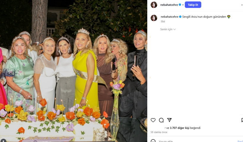 Nebahat Çehre o anları “Sevgili Arzu’nun doğum gününden” notuyla paylaştı. Arzu Sabancı’nın doğum günü olduğu öğrenildi.