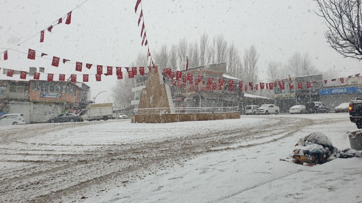 Akşam saatlerine doğru lapa lapa yağan kar ile ilçe merkezi kısa sürede beyaza bürüdü.